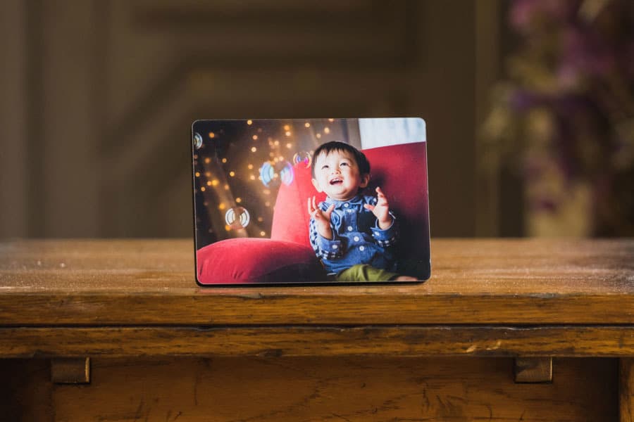 鮮やかさが際立つ艶々のアクリルフレーム。おじいちゃん、おばあちゃんへのプレゼントにもおすすめです。