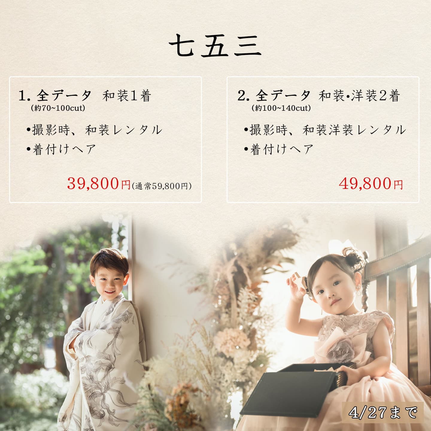 なお、洋装は ¥2,500(ヘアセット込み)の追加料金が必要です。