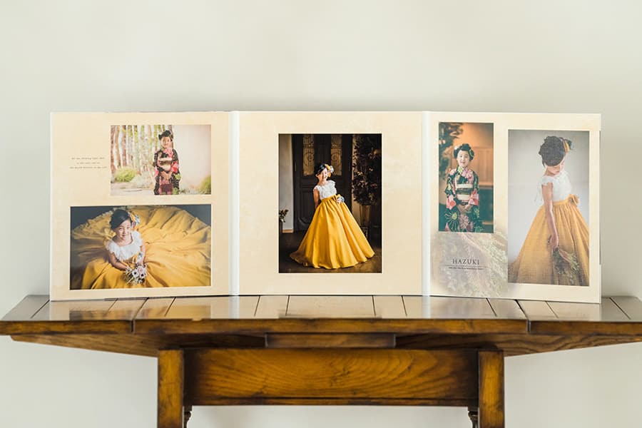 従来の写真製本だけでなくキャンバス生地を思わせる中枠表面にも写真が印刷され、絵画のような仕上がりになります。