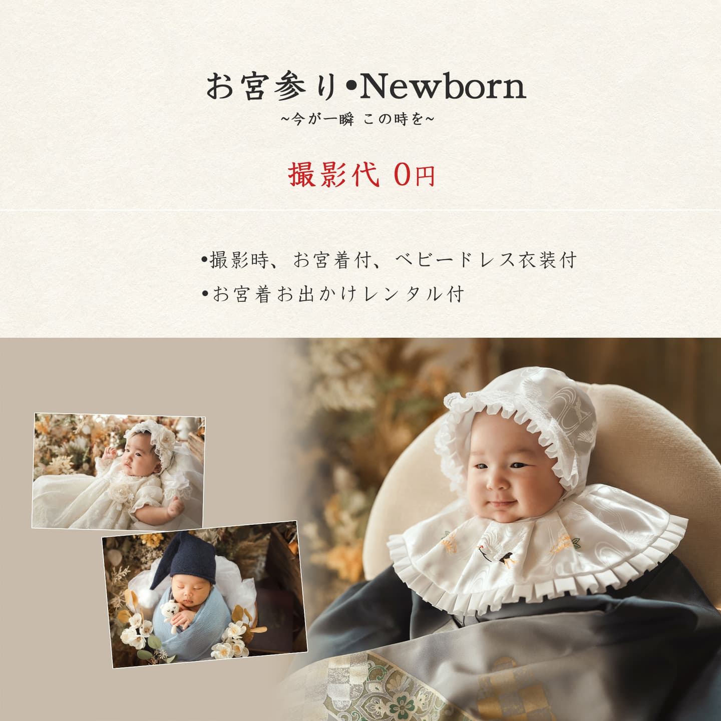 A.撮影時に赤ちゃんが熟睡できるよう、来店直前に授乳をお済ませください。